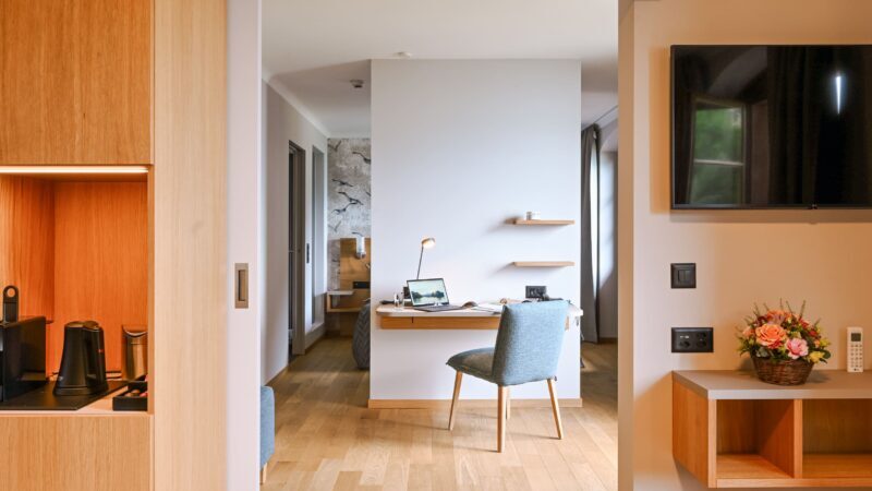 Arriving here, you are instantly captivated by the charm of the place. Its timeless design and solid alpine architecture create an atmosphere that feels safe and grounding. The hotel is distinguished yet unpretentious, refined yet welcoming, making you feel immediately safe and relaxed. Every detail, from the charming alpine hallways and quiet corridors to the serenity and comfort of the rooms, gives you the space to focus entirely on yourself and your recovery without distraction.